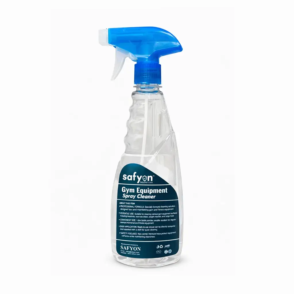 Safyon 1 Litre Cleaner is designed for daily cleaning and sanitization of gym equipment and fitness surfaces. It helps maintain hygiene on machines, weights, handles, and accessories used frequently in gyms.